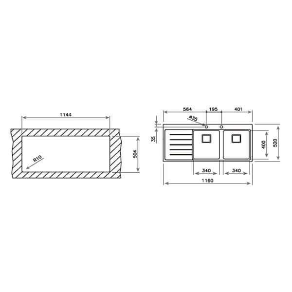 Hố Chậu rửa bát dương bàn bếp TEKA ZENIT RS15 2B 1D có kích thước rộng giúp bạn có thể rửa nhiều thực phẩm cùng lúc.