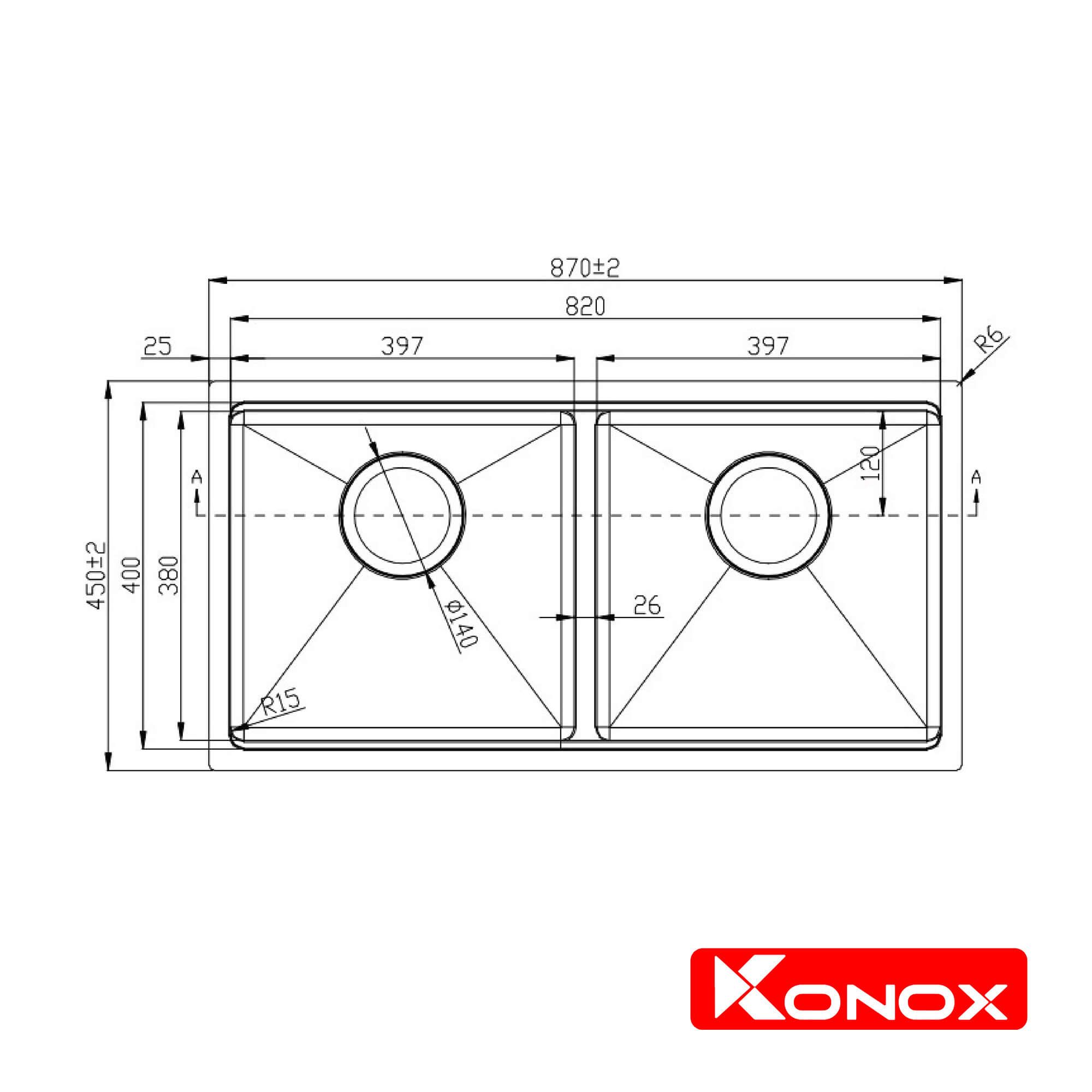 Phong cách chậu rửa bát lắp âm hiện nay đang được ưa chuộng bởi sự thẩm mỹ và tạo ra không gian bàn bếp tối giản. Người dùng sẽ thuận lợi hơn khi thao tác vệ sinh bàn đá quanh khu vực bồn rửa nhờ việc lắp âm hoàn toàn dưới mặt đá. Model KN8745DUB thuộc bộ sưu tập Undermount Series của Konox, chậu được thiết kế kích thước rộng dành cho khoang tủ 850mm trở lên với phong cách thiết kế vuông hiện đại, công nghệ tạo gờ hai bên giúp tích hợp thớt gỗ và các phụ kiện. Người dùng có thể thao tác thái cắt đồ nấu ngay trên mặt chậu, tạo nên trải nghiệm mới lạ và tiện ích độc đáo. KN8745DUB giúp chậu âm trở nên hoàn hảo và đẳng cấp hơn, tạo điểm nhấn nổi bật trong gian bếp nhà bạn.