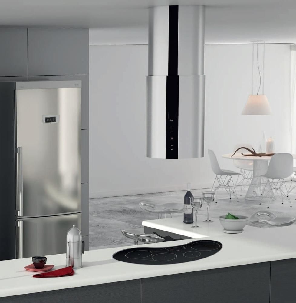 Máy hút mùi được thiết kế dạng ống phù hợp với không gian bếp đảo